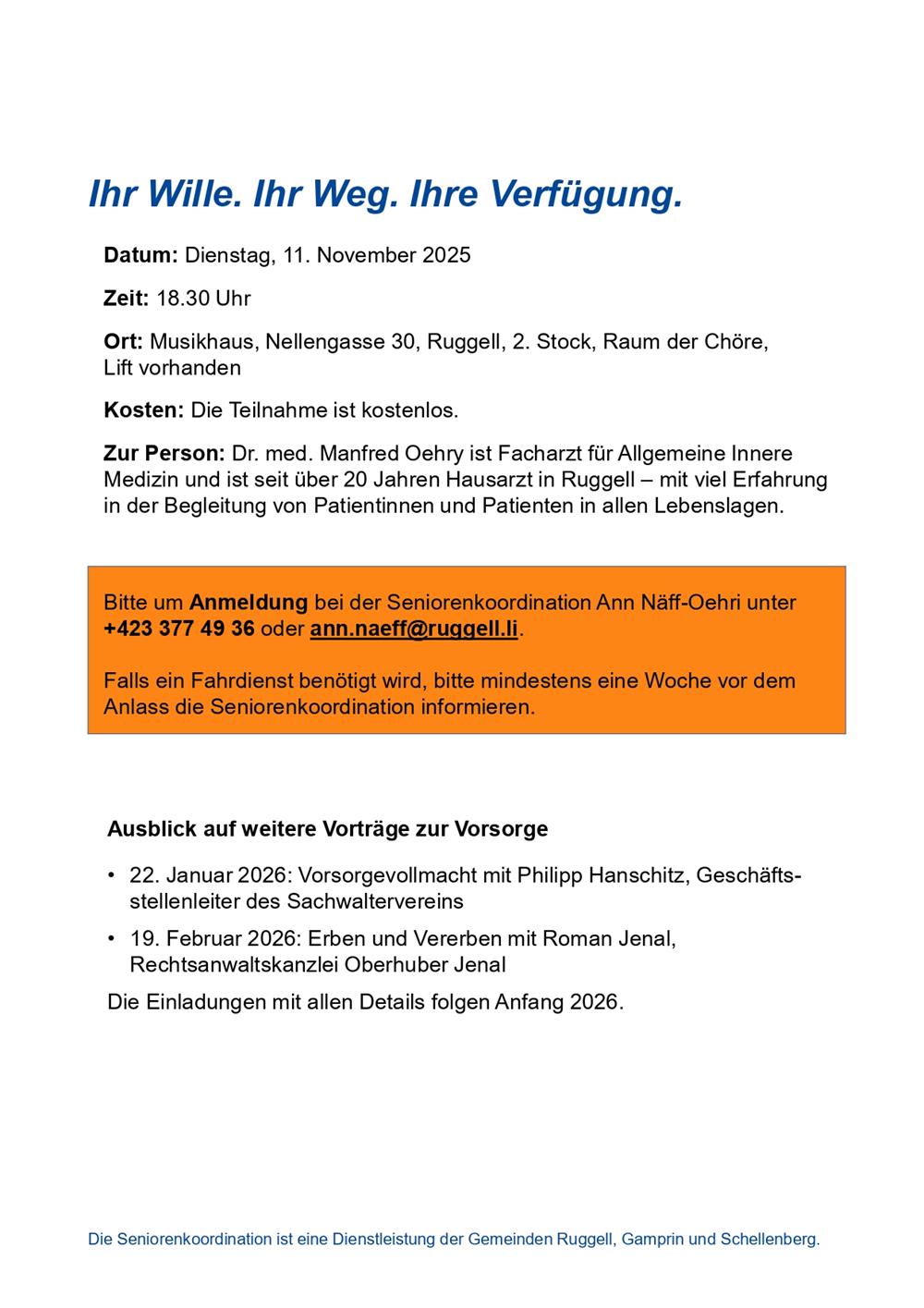 Vortrag Patientenverfügung mit Dr. Manfred Oehry
