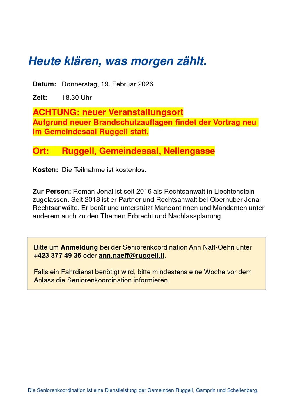 Vortrag Erben und Vererben mit RA Roman Jenal